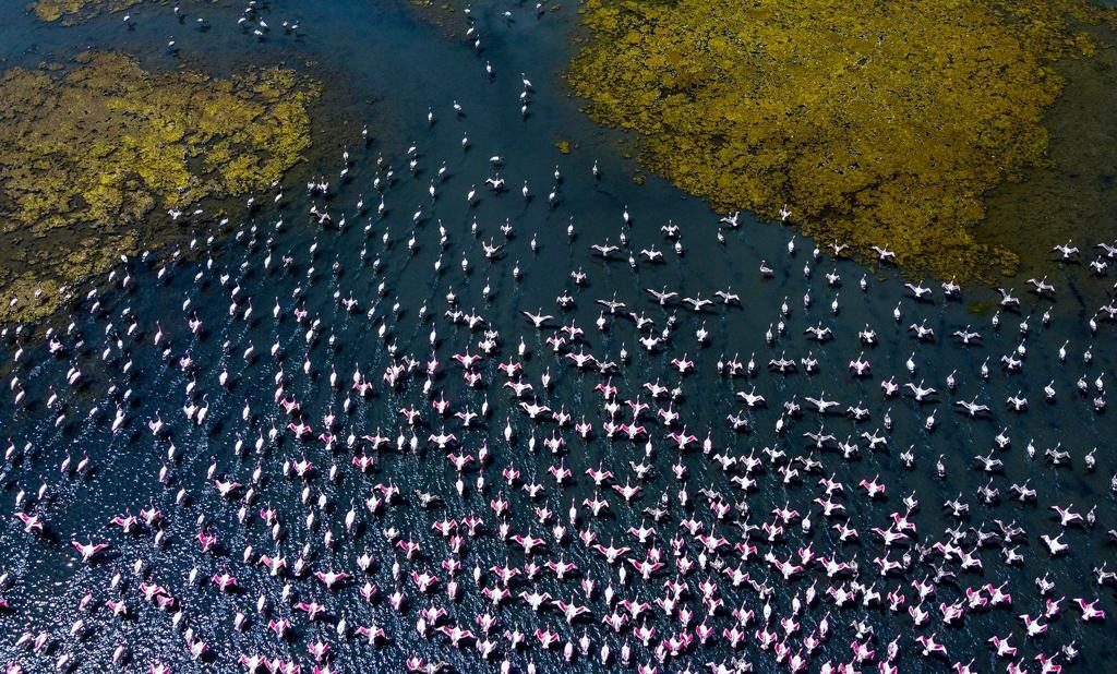 4. Thousands of Flamingos Turn Creek Pink!